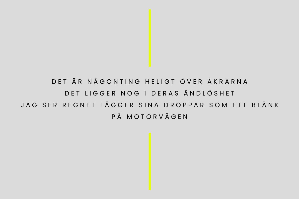 Litteraturen har alltid haft en stor närvaro i mitt liv. Poesi ser jag som en kravlös form där det inte riktigt finns ett regelverk. Där du kan vara den allra renaste formen av ditt skrivande jag. Jag läser nog egentligen mer romaner än poesi. De flesta dikter jag skriver är skrivna i anteckningsappen i min telefon, inte helt sällan när jag åker buss.