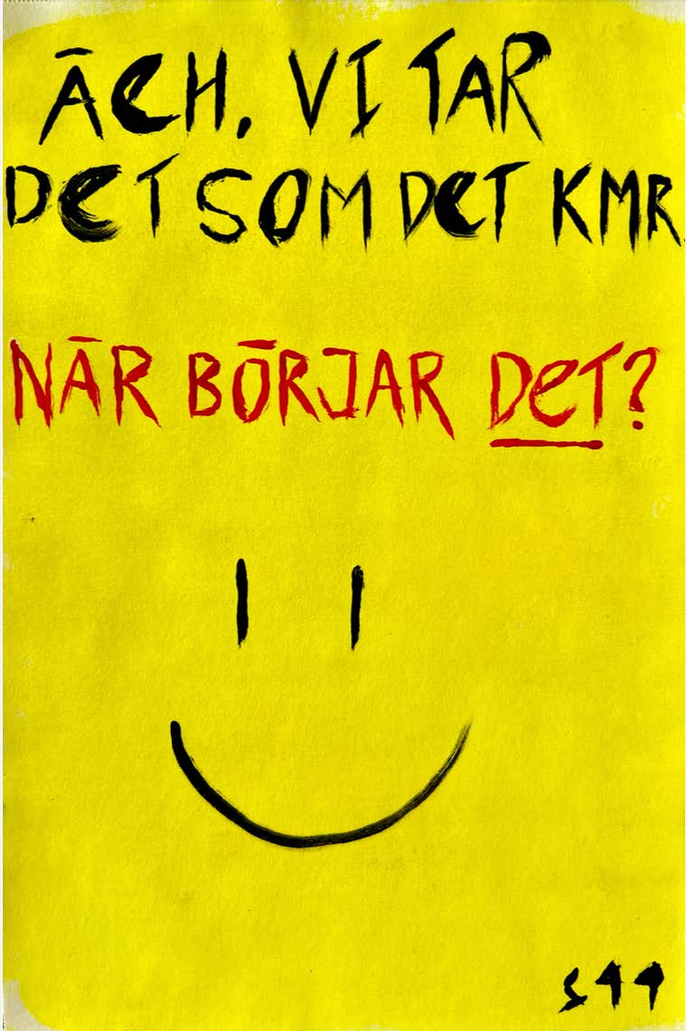 "GUL", digitalt tryck, inramad med svart ram, 50x70 cm. Sökes: ordningsprinciper. Finnes: floskler.