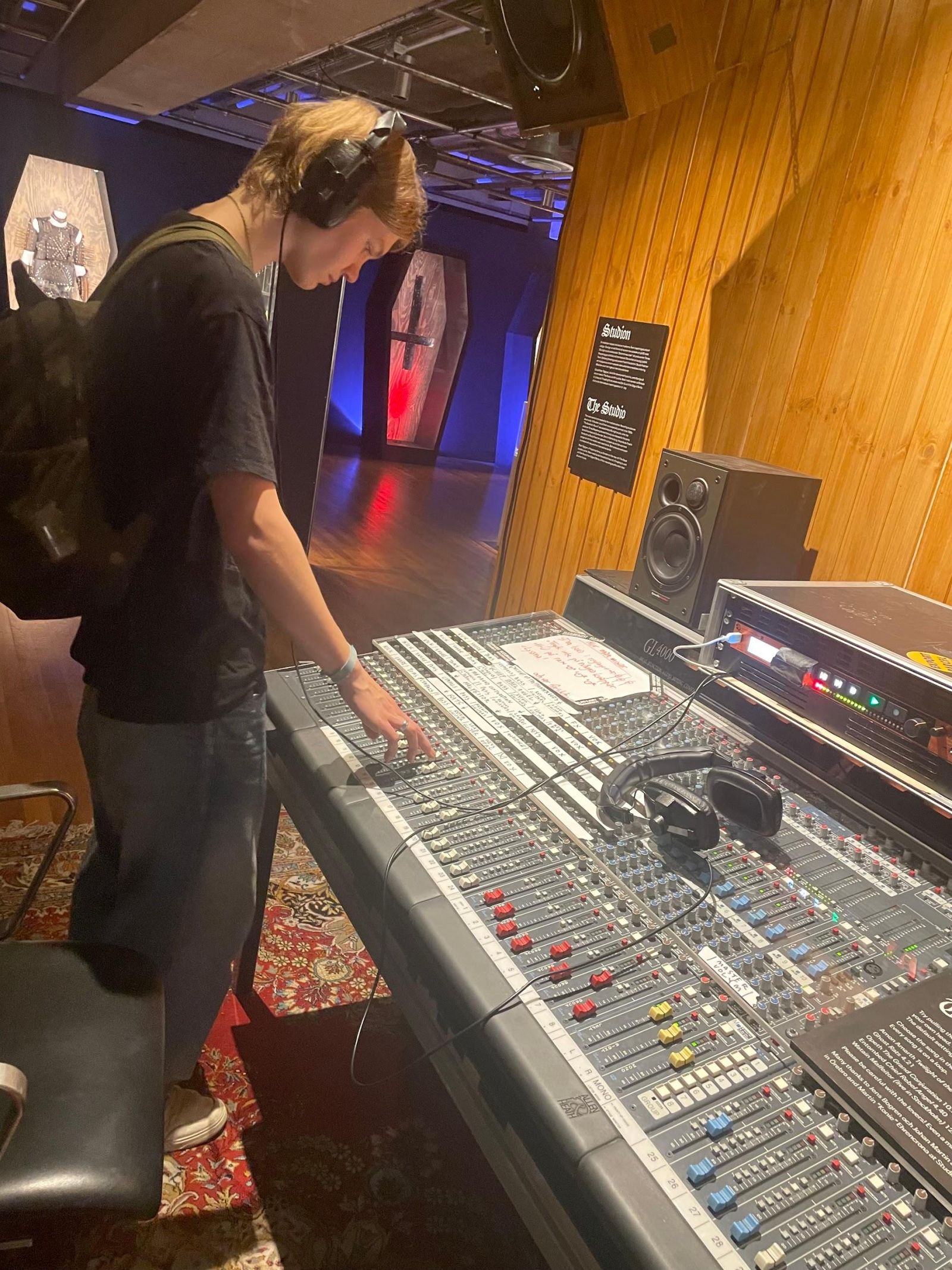 På utställningen fanns också ett mixerbord där vi kunde testa att mixa färdiga låtar på det sätt vi ville. Vi konstaterade dock att black metal är svårt att mixa ”fint”. Det kvittade om man sänkte diskanten eller basen, det lätt lika skränigt ändå. Även om det var svårt att göra bra var det ändå kul att mixa en metallåt.