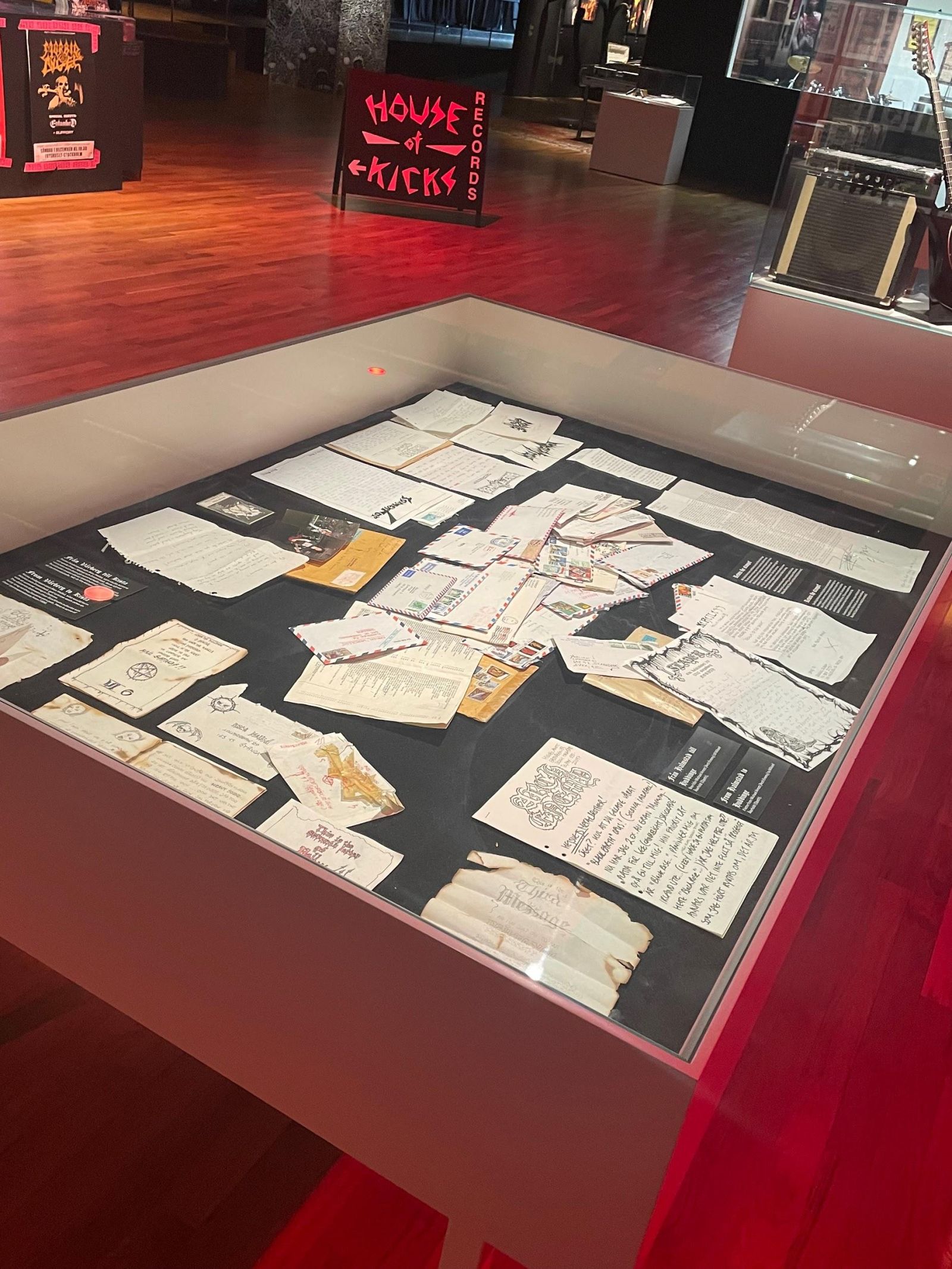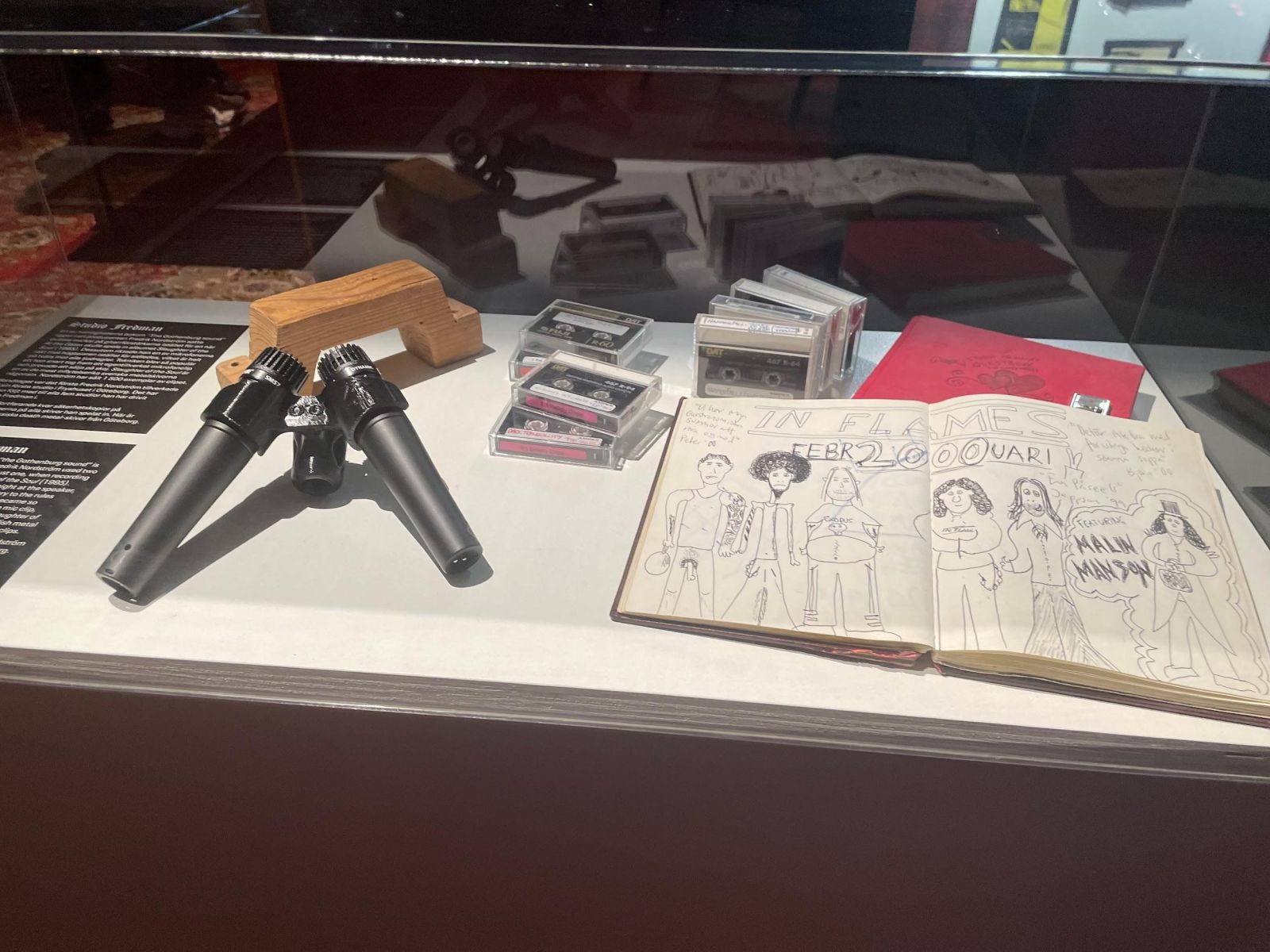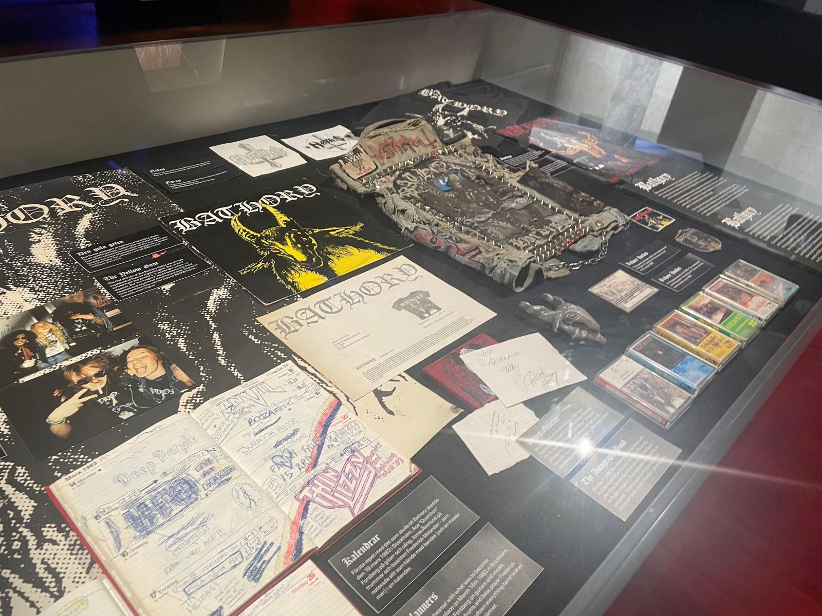 Vi fick se flera bord som hade teckningar, skisser, kassetter och brev från band såsom Opeth, Mayhem, Entombed och mer. Många av dessa brev var också mellan de olika banden. Även om vi båda tyckte att vissa saker var lite svårt att läsa så tyckte vi att det var intressant. Det var också coolt att se alla teckningar och målningar som de olika artisterna har gjort. Detta visar att många metal-artister inte bara är kunniga inom musik, men också konst.