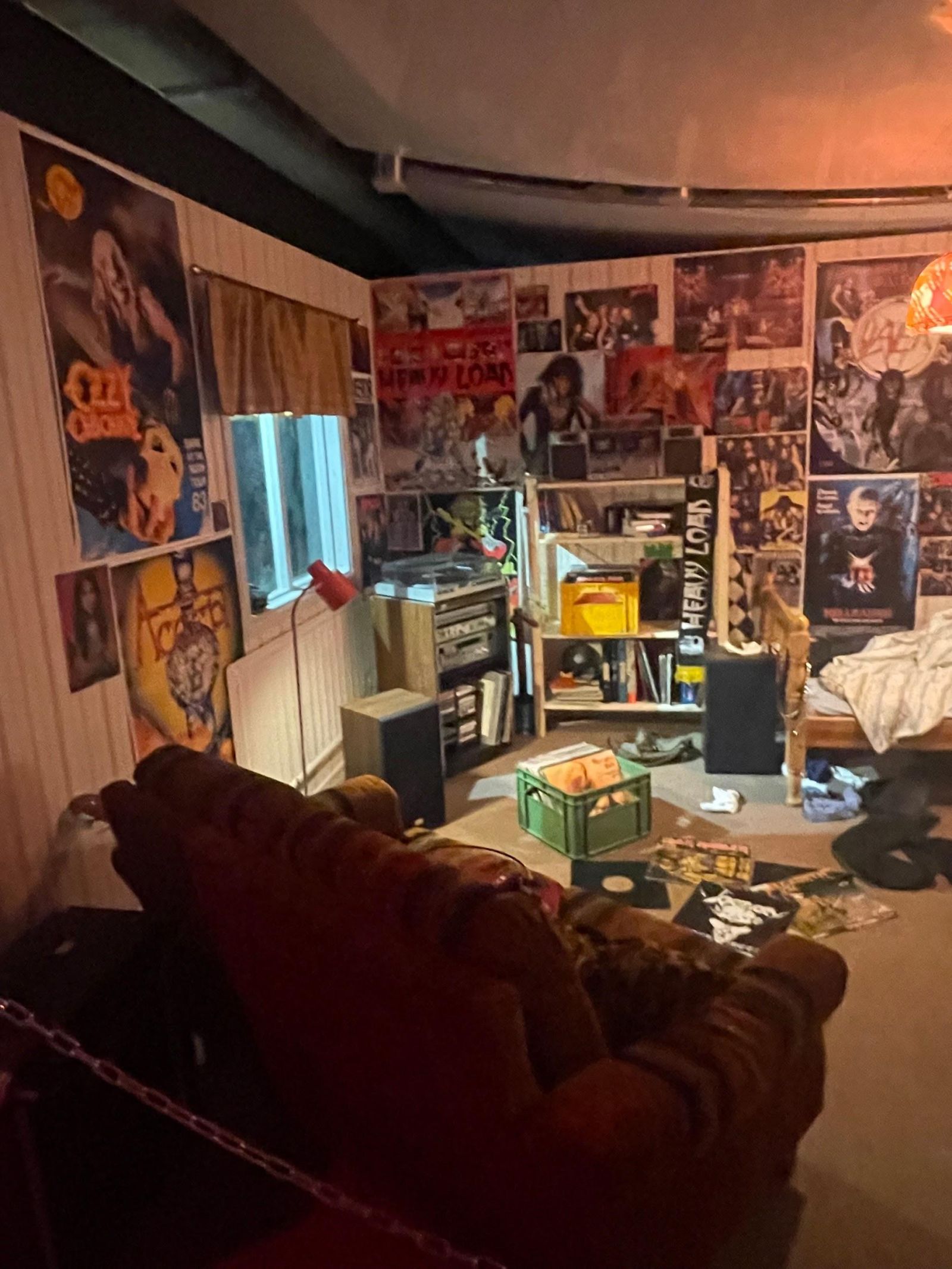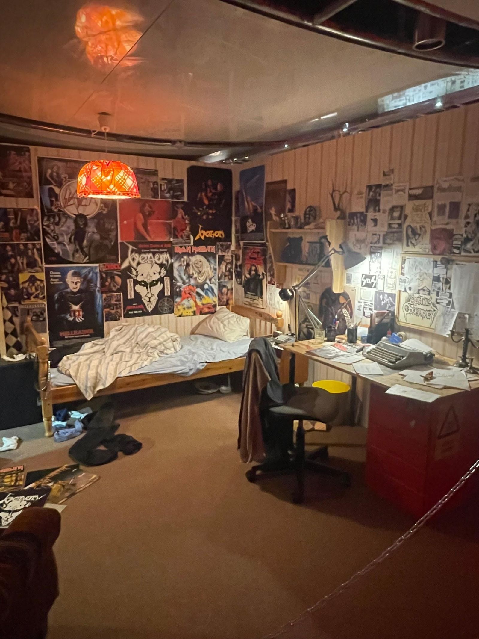 Vi kom vidare och såg ett rum som såg ut att ägas av ett metalhead på 90-talet. Edvin skämtade och sa att det typ är lika stökigt som våra rum, (vilket det är). Vi såg på rummet och tänkte på hur detta skulle kunna vara våra rum om vi hade vuxit upp under 80/90-talet.