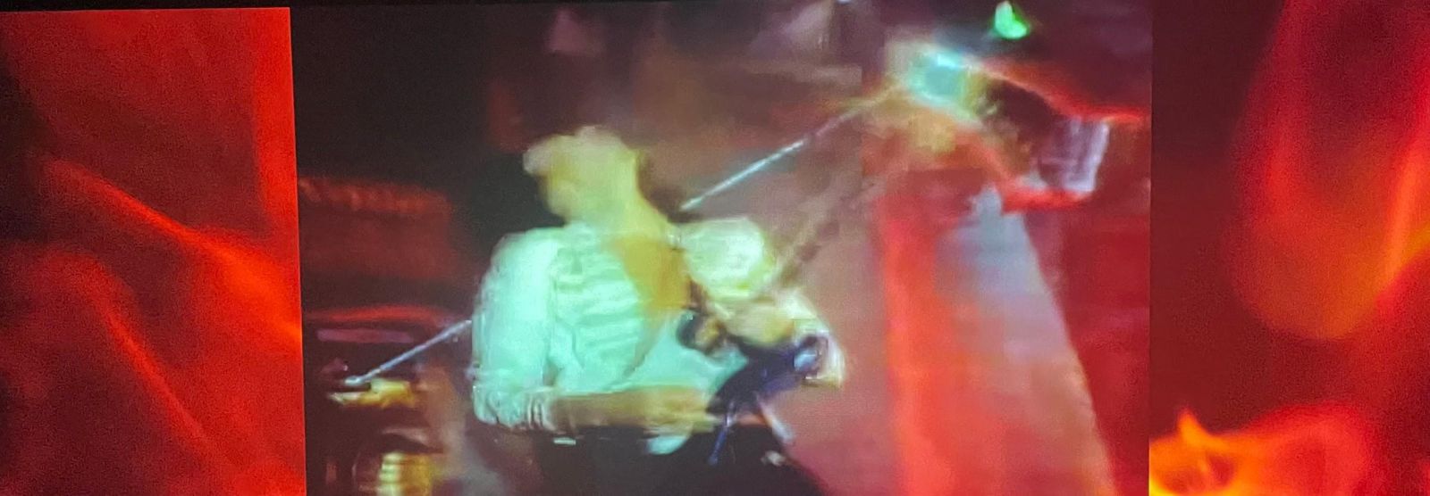 Första rummet vi kom in i var ett stort mörkt rum med en skärm. På skärmen såg vi en inledande video om den svenska metal-historien. Den inkluderade små klipp och intervjuer från svenska band/artister genom alla tider, såsom Yngve Malmsten från 80-talet till Bloodstain i nutid. Detta gav oss en överblick vad denna utställning kommer handla om.