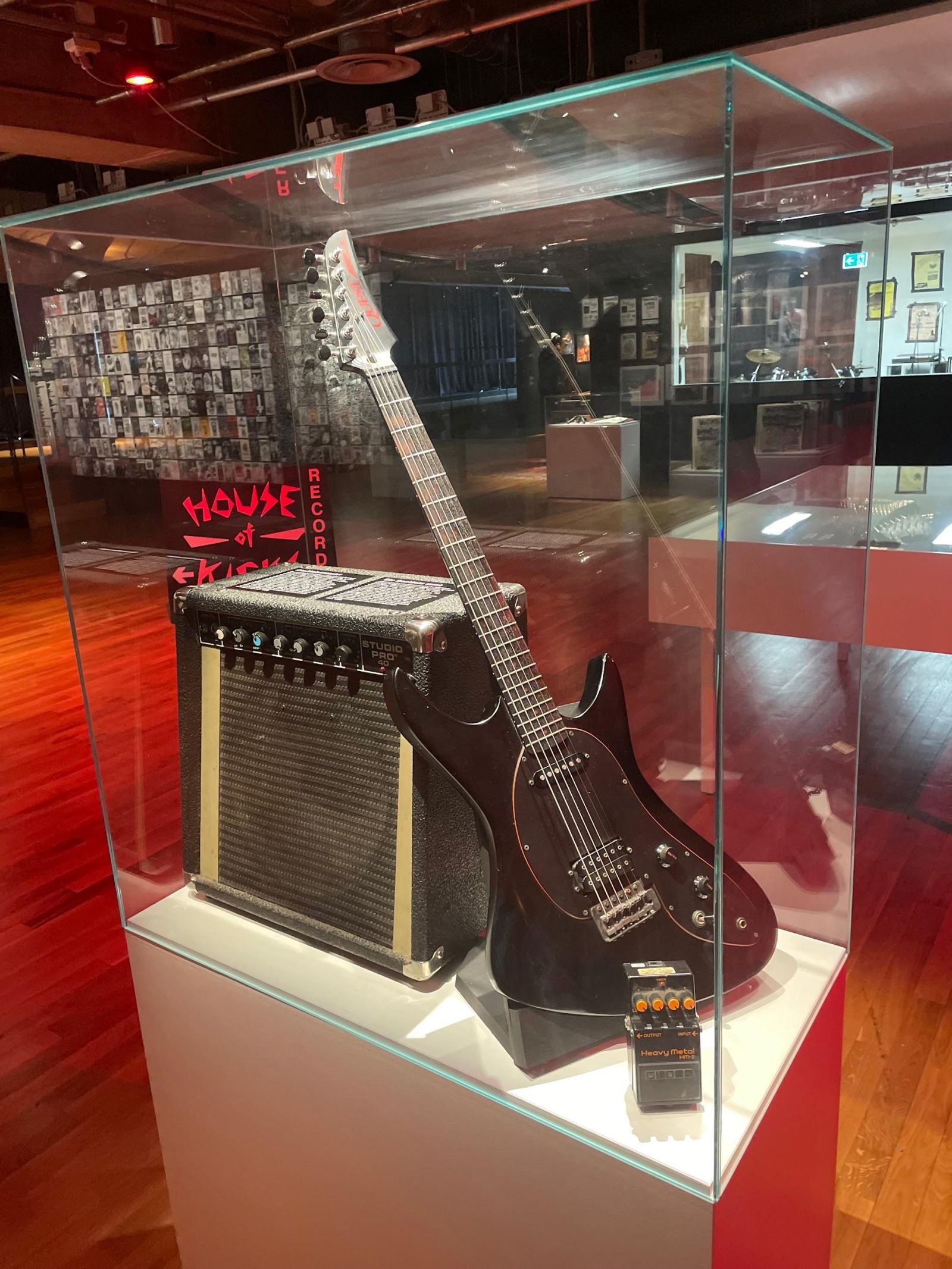 När vi gick runt såg vi en del objekt uppställda i montrar. Vi såg instrument, bandtröjor och massa rekvisita som varit känt inom svensk metalhistoria. Både saker som var helt nytt för oss och saker som verkade mer bekanta.