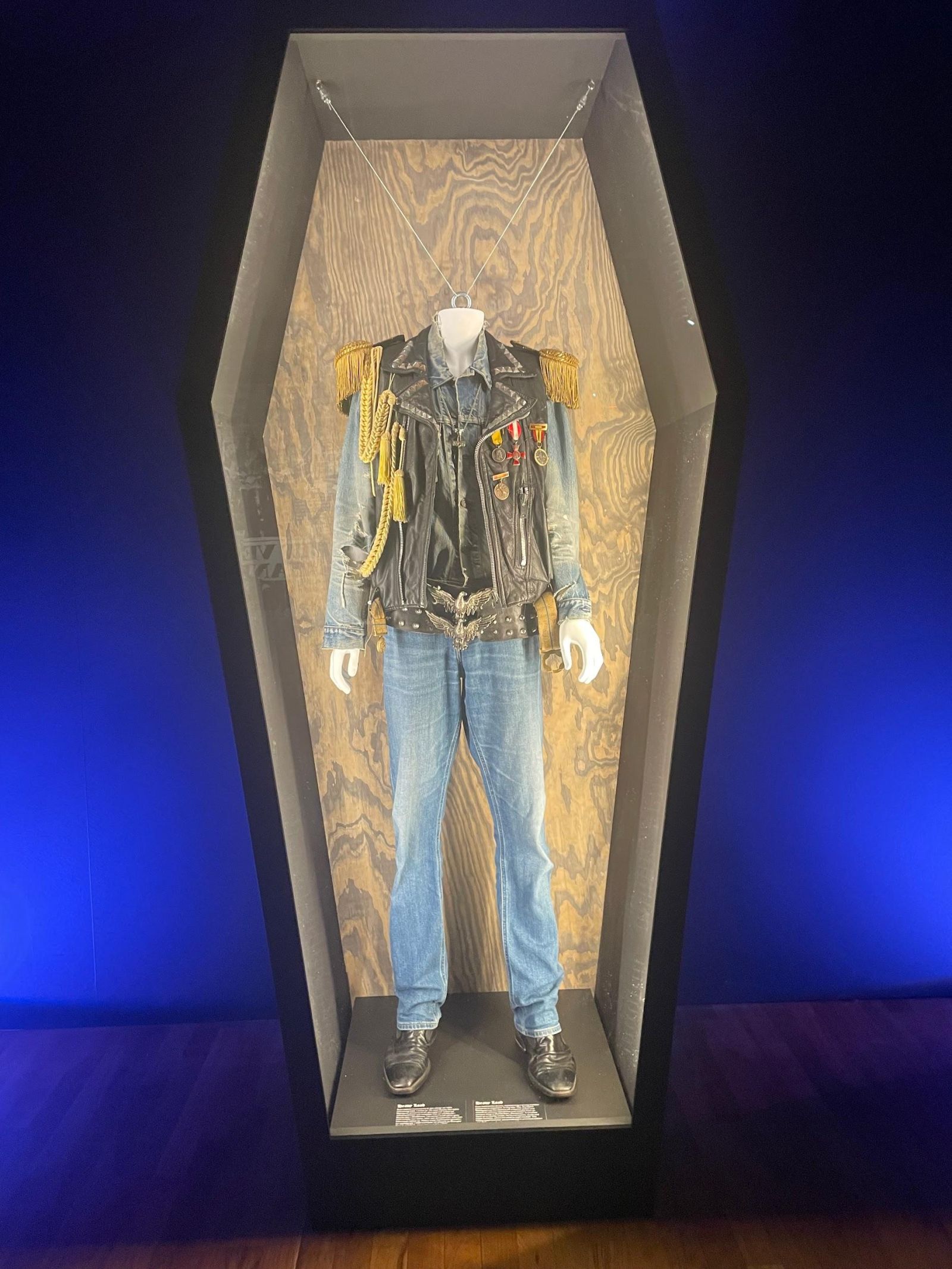 Direkt till höger fanns även en skylt om Total metal som berättade vad utställningen handlar om. Den gav en bra överblick på vad vi skulle se och hur det brutala soundet har fått en sådan stor plats i samhället, från att vara sedd som ett oväsen från ungdomarna. För oss unga esteter var det lite svårt att läsa allt men intressant var det. Det var dock inte bara en skylt om hela utställningen. Det fanns flera skyltar och sektioner som fördjupade sig i olika genrer och mer. T.ex kring Death Metal och Black Metal.