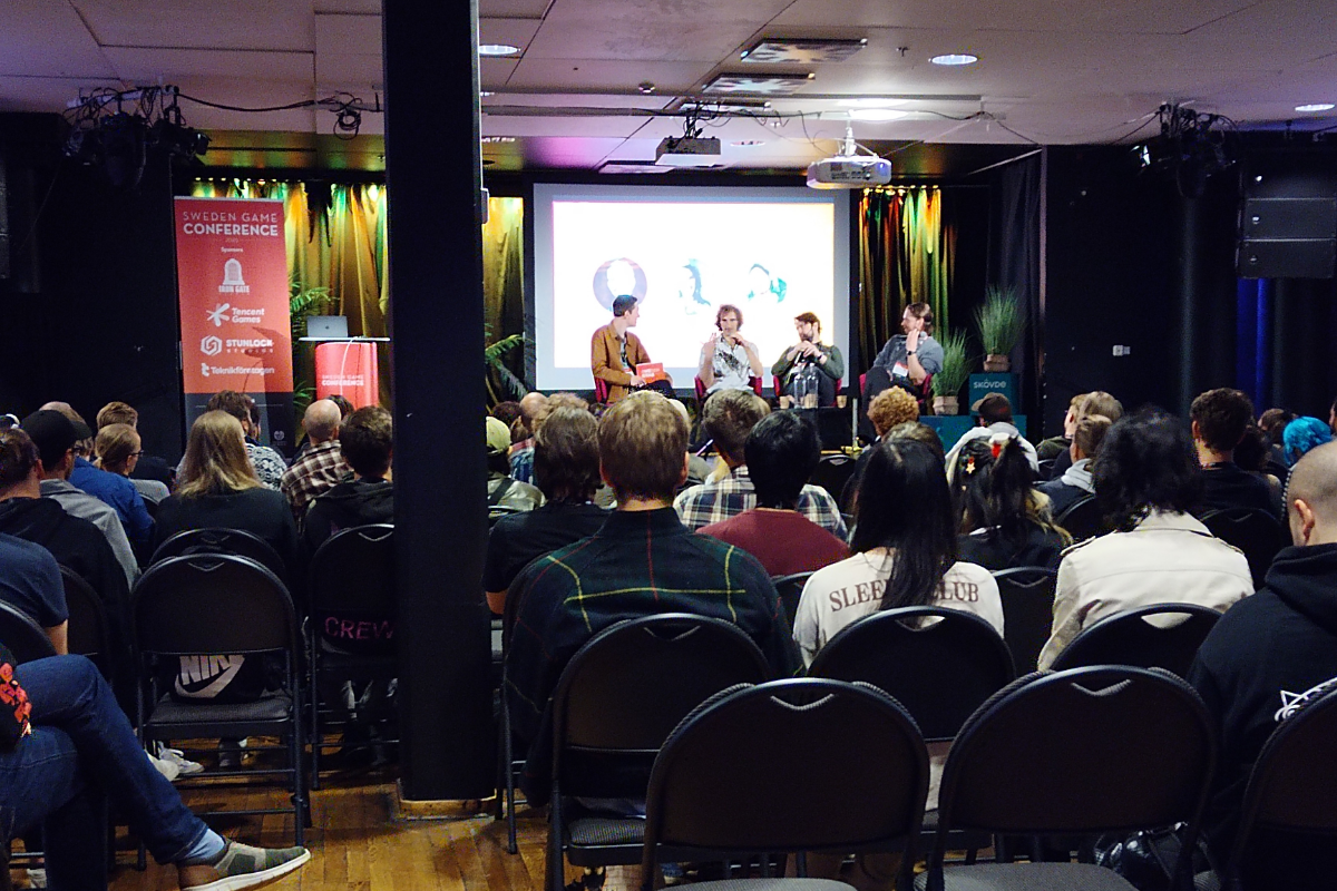 I Skövde Kulturhus öppnar Sweden Game Conference upp varje år i två dagar fyllda av talks, paneler, mingel, och dedikerade ytor för allt från stora företag tillnystartade start-ups att ställa upp och visa vad de har att erbjuda. Utanför den stora Valhall-salen är det datorer med spel att testa och det blir trångt medspelarna, spelutvecklarna, och alla åskådare. På övre plan finns Career Day somär betydligt glesare. På övre plan hittas också ett avskärmat område med mentorer som hjälper andra att utveckla sina portfolion. Överallt är en omringad av andra spelutvecklare där det ibland går att gissa sig till vilket område de inriktat sig på: Huvjackor och lösa jeans för programmerare och designers, onaturliga hårfärger och alternativt mode för mig och andra grafiker. Studerande, arbetssökande, och spelutvecklare står i klungor där de åter träffat gamla bekanta eller fångar upptalare efter deras talks.