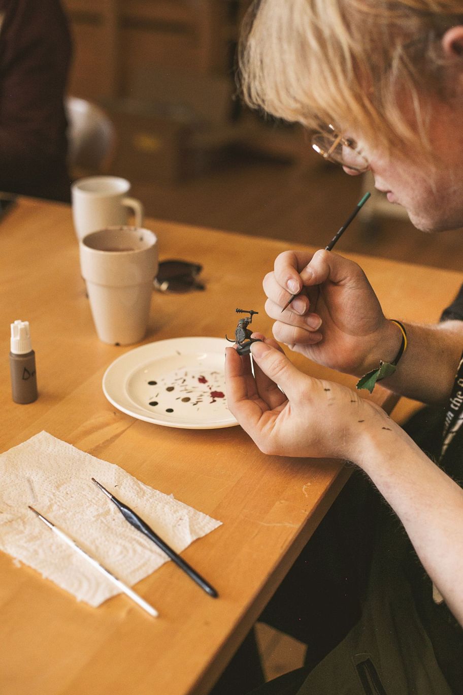 MitterMakes Linnéa och Erik guidade deltagare genom konsten att bygga imponerande hjälmar i EVA-foam – perfekt för cosplay-entusiaster. Miniatyrmålningsexperten Elinore Rönning visade hur små detaljer gör stor skillnad när figurerna fick liv genom skicklig penselteknik. Hos täljaren Viggo Stahle förvandlades träbitar till unika spelpjäser med personlighet.