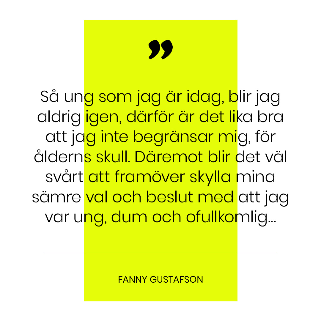 Är det då dags att säga farväl till min ungdom? Jag tänker att vara fri i sinnet inte har någon ålder. Så ung som jag är idag, blir jag aldrig igen, därför är det lika bra att jag inte begränsar mig, för ålderns skull. Däremot blir det väl svårt att framöver skylla mina sämre val och beslut med att jag var ung, dum och ofullkomlig, men ytterligare 1,5 månad har jag ändå kvar tills jag måste komma på nya ursäkter att hänvisa mitt beteende till.
