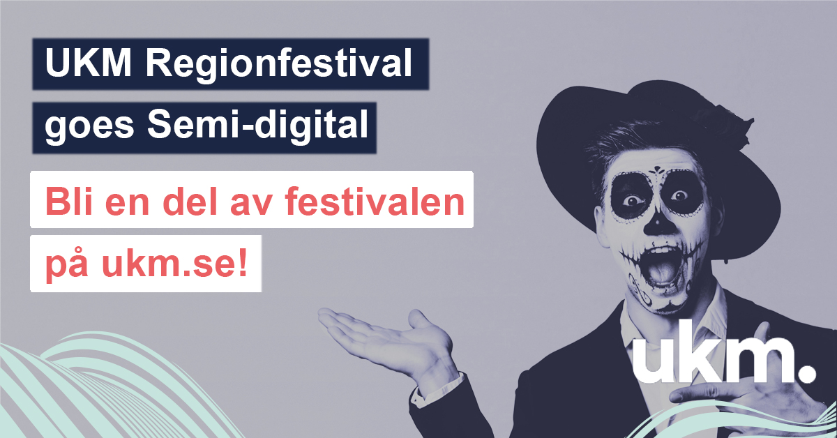 Lördagen den 10:e oktober mellan klockan 18:00 öppnas dörrarna online till UKMs första semi-digitala regionfestival. Detta kommer att bli något nytt men med samma vänskapliga UKM-anda som vanligt. Festivalen kommer att livestreamas från Åmål, och under kvällen leds vi av två fantastiska konferencierer genom en mängd olika scenframträdanden och konstbidrag blandat med annat spännande material som spelats in i förväg.
