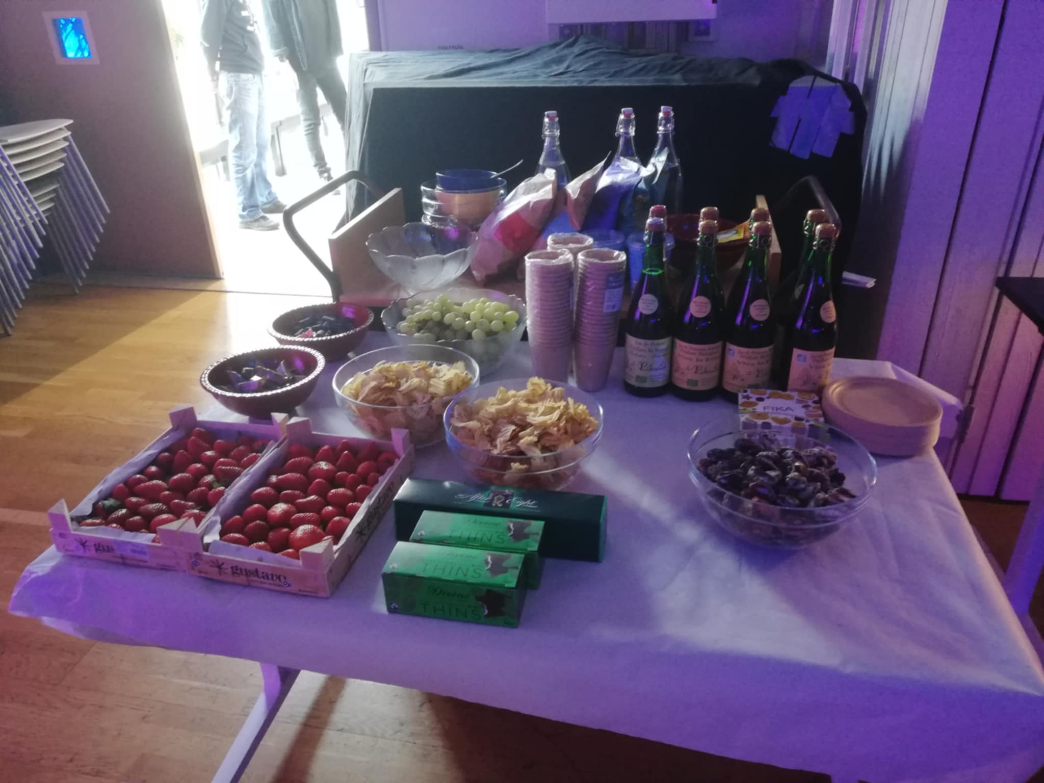 Vi ställde fram ett bord med snacks och dricka framför entrén där alla fick plocka på.