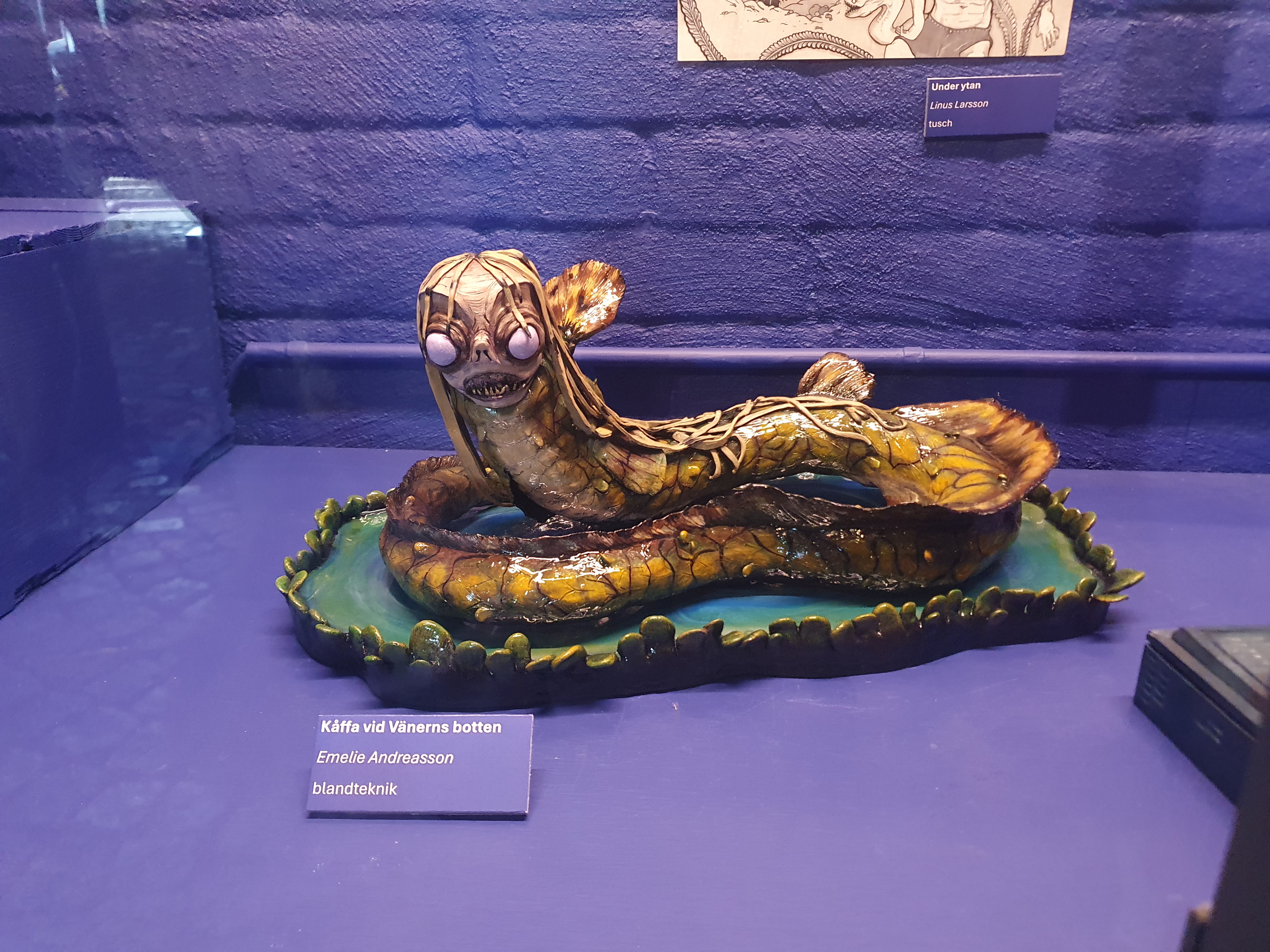 Projektets idé arrangerades av konstnären Ylva Svensson Svart tillsammans med Väneermuseet som ville bjuda in konstnärer för att få tillbaka magin och att återuppliva legenden om sjöodjuret Koffa som sägs finnas i Vänern. Det blev jag och 22 andra konstnärer som med olika uttryck och tekniker tolkade Koffa som sedan ställs ut på Väneermuseet i Lidköping från 15 Juni till 28 September. Jag skulpterade med hjälp av polymerlera, apoxie sculpt, resin och trä. Det var roligt att kunna göra en större skulptur än vad jag har gjort tidigare, vilket också var lite av en utmaning!