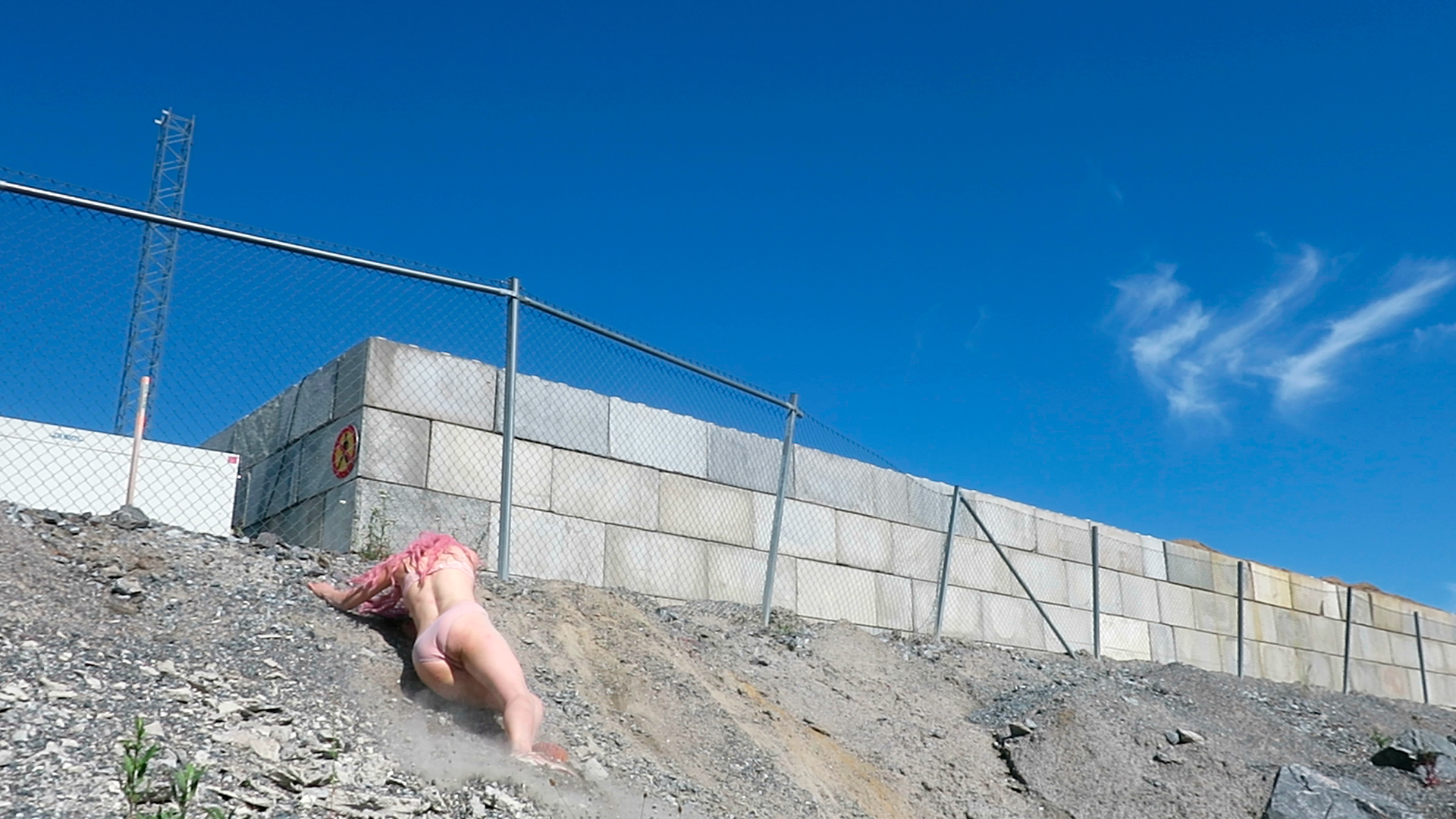 I ett fragmentariskt videomaterial inspelat i stadsrummets utkanter följs ett antal personer som med hjälp av rekvisita med influenser hämtade från internetkultur och snabb konsumtion interagerar med sin omgivning. Karaktärerna som syns i filmerna spelar på en slags fetisherad feminititet som när den ställs på sin spets blir frånstötande snarare än behagande. En djup koncentration bryts av ett snabbt ögonkast in i kameran vilket bryter den annars närvarande känslan av voyeurism och ger personerna i filmen en slags egen agens. Vem är det som betraktar vem, och hade akten pågått även utan kamerans närvaro?Utställningen bestod av projicerad video, fyra inramade foton och en jordhög täckt av ogräs där sju stycken soldrivna fjärilar cirkulerade.