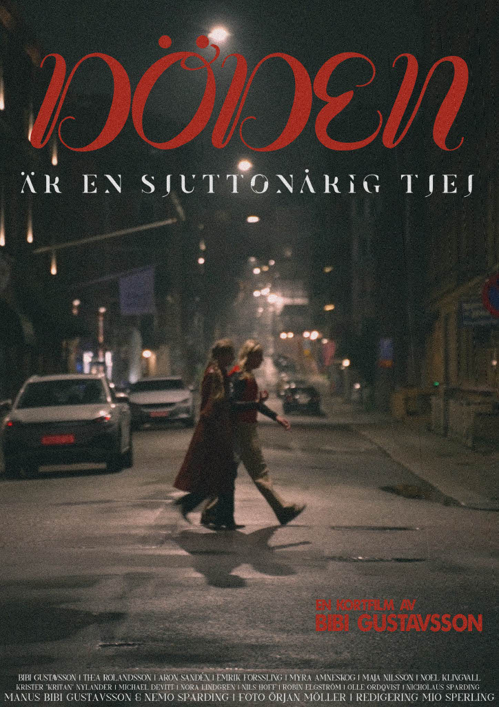 "Döden är en sjuttonårig tjej" är min (Bibi Gustavssons) debut-kortfilm. Den sekvensen som visas i filmen är ett utdrag från ett manus till en tv-serie i åtta delar. Tematiken kretsar kring psykisk ohälsa och när den sätts i uppskruvade situationer.Projektet har gått oväntat bra att genomföra där alla moment har varit intressanta. Och framförallt är jag väldigt nöjd med resultatet.